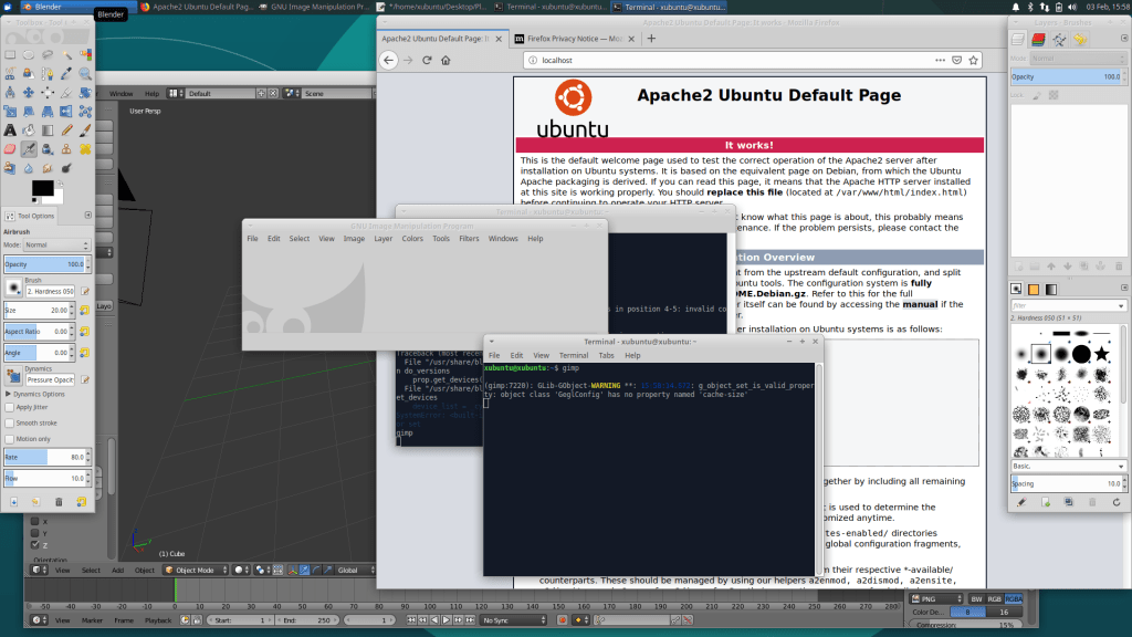 Käynnistin Blenderin komennolla ”blender” terminaalista.