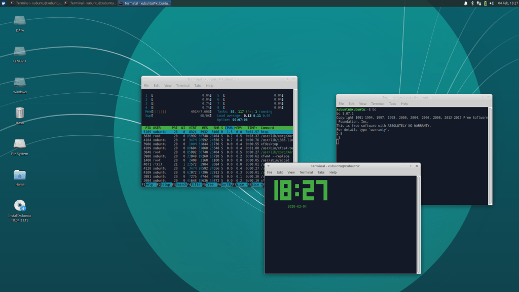 Turvauduin siis jonkun muun redditissä https://www.reddit.com/r/commandline/comments/9b426l/best_terminal_apps/ kyhäämään listaan ja asensin täältä muutaman. Valintani kohdistuivat ohjelmiin tty-clock, bc ja htop.