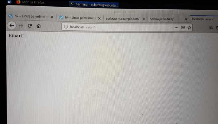Kävin vielä lopulta testaamassa kansion toimintaa einarina, otin ssh yhteyden ssh einari@localhost ja navigoin public html cd /home/einari/public_html
